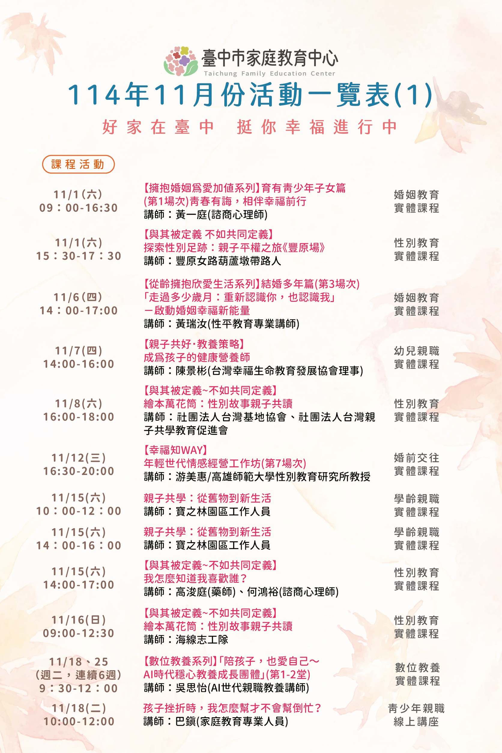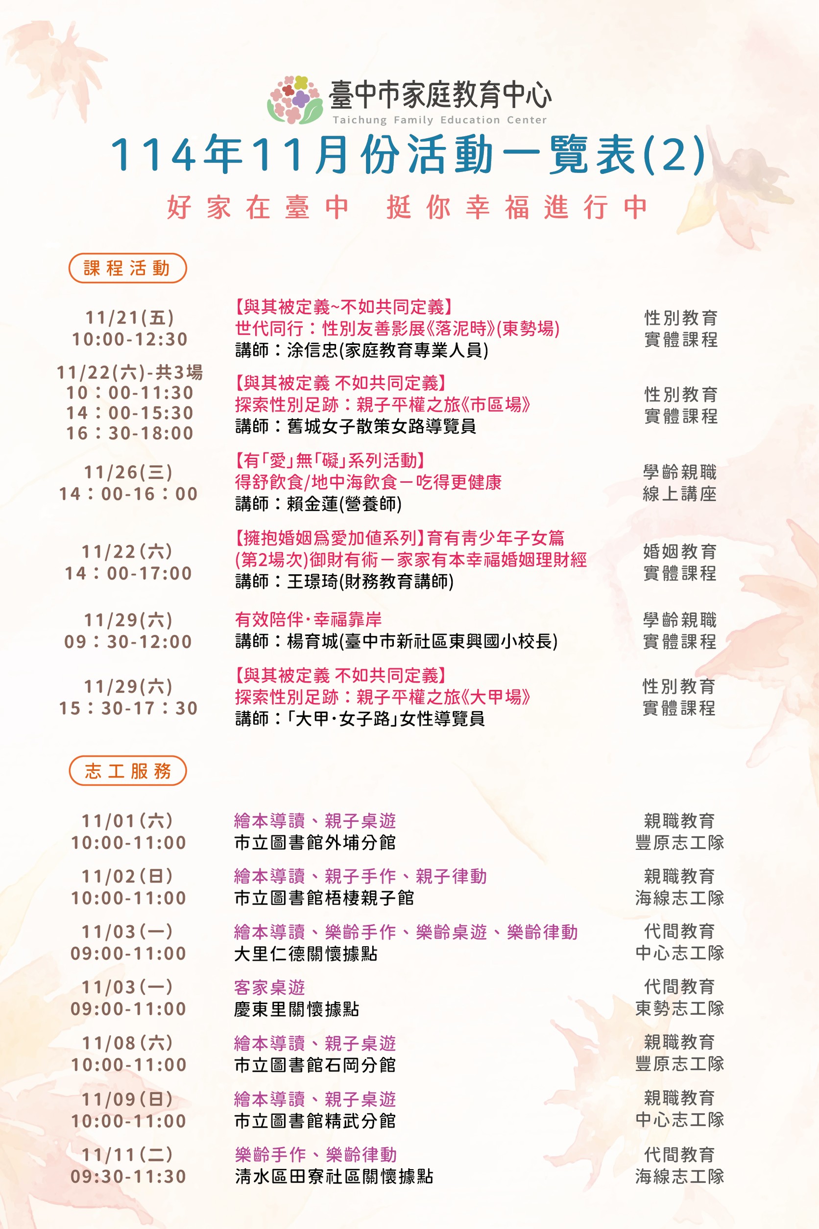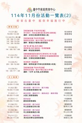 家庭教育中心11月份活動一覽表-課程活動及志工服務