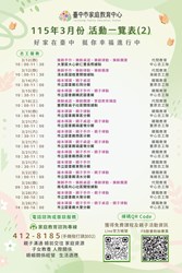 臺中市家庭教育中心115年3月份活動一覽表。